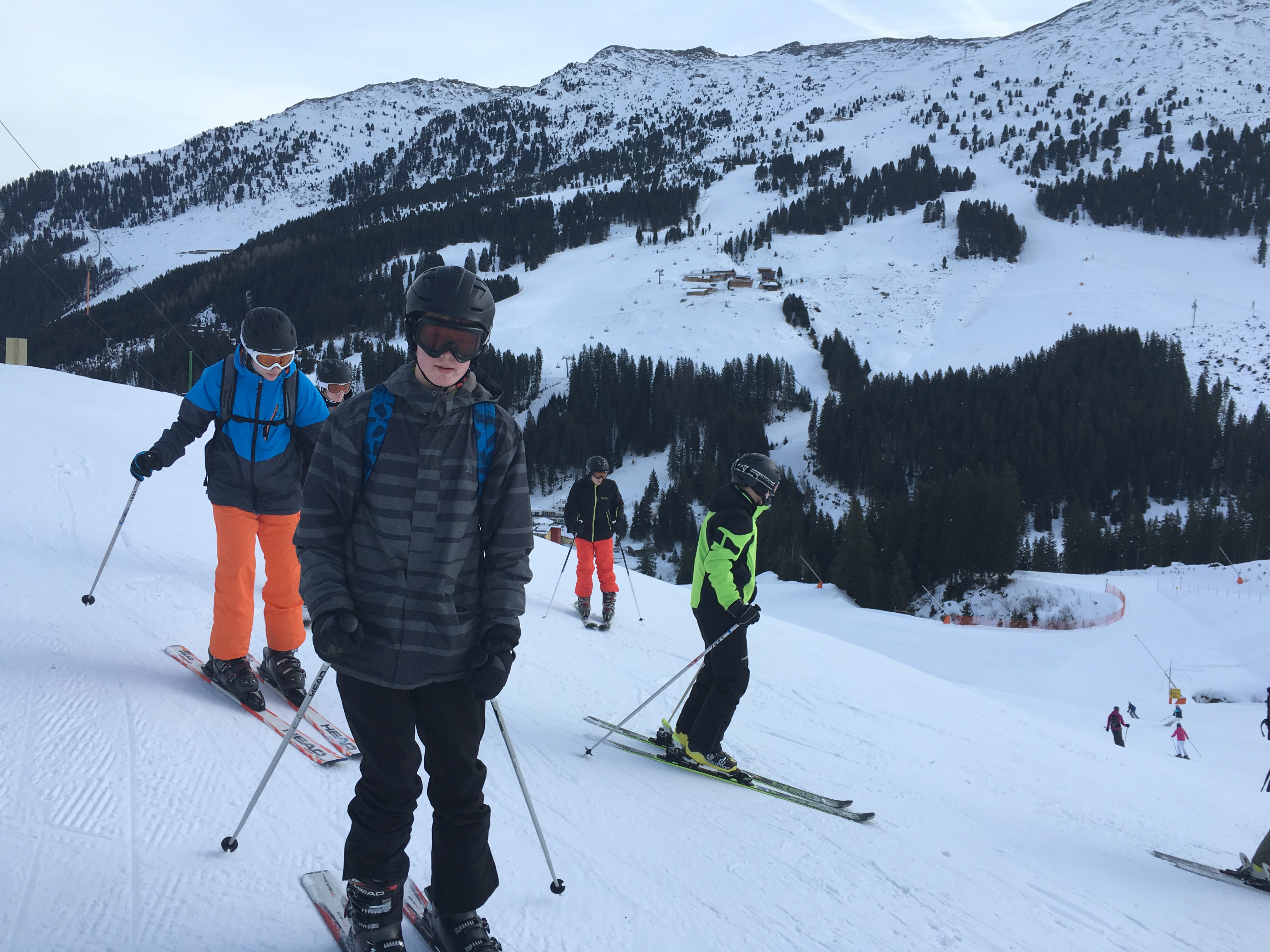 Es gab kaum Stürze, wenn dann auch nur sehr leichte. Die Anfängergruppe ist heute zum ersten Mal auf „richtigen“ Skiern gefahren, bisher haben sie Snowblades verwendet.